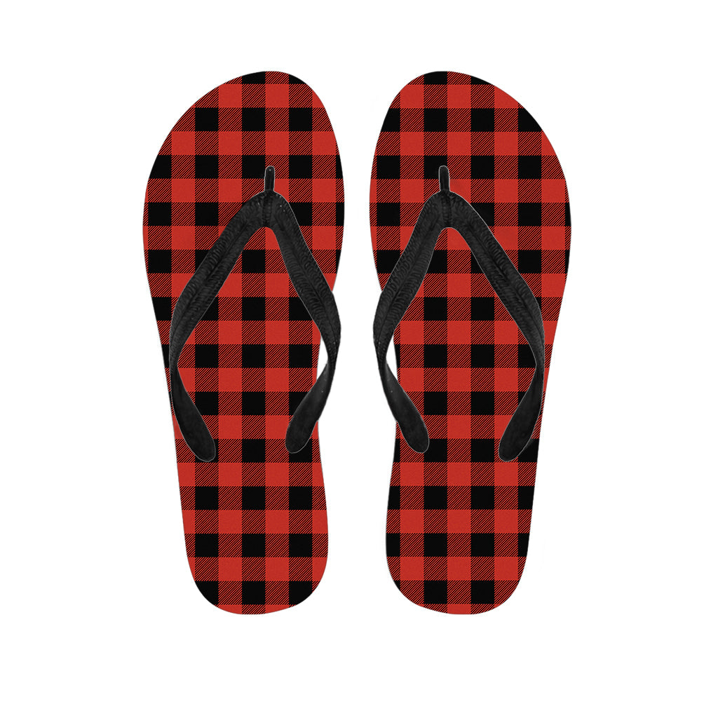 Lava Orange Buffalo Check Pattern Print Flip Flops For Men Women