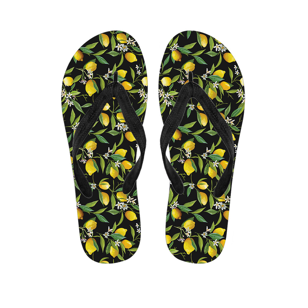 Lemon And Flower Pattern Print Flip Flops For Men Women