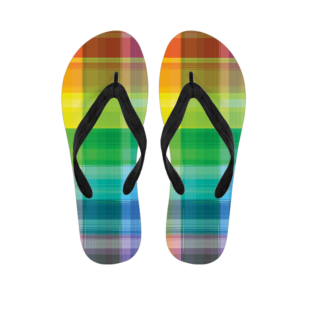 Lgbt Pride Rainbow Plaid Pattern Print Flip Flops For Men Women