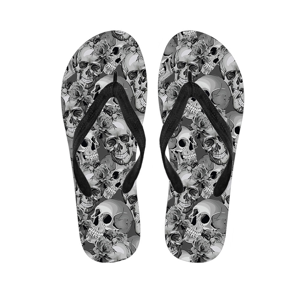 Monochrome Skull Flowers Pattern Print Flip Flops For Men Women