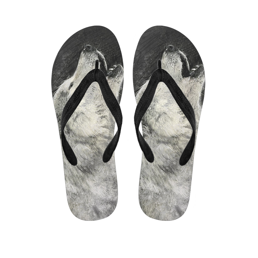 Monochrome Howling Wolf Print Flip Flops For Men Women