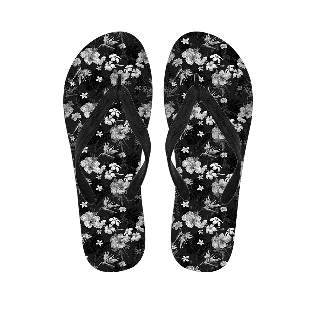Monochrome Hawaiian Floral Print Flip Flops For Men Women
