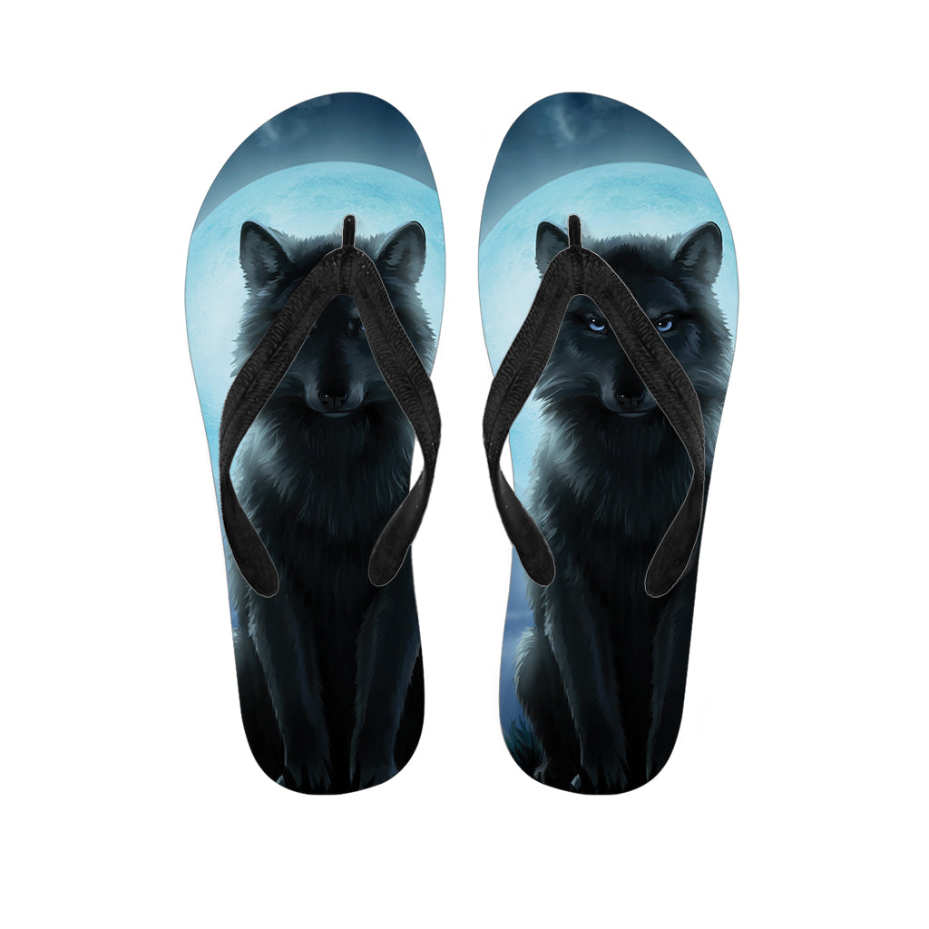 Moonlight Wolf Print Flip Flops For Men Women