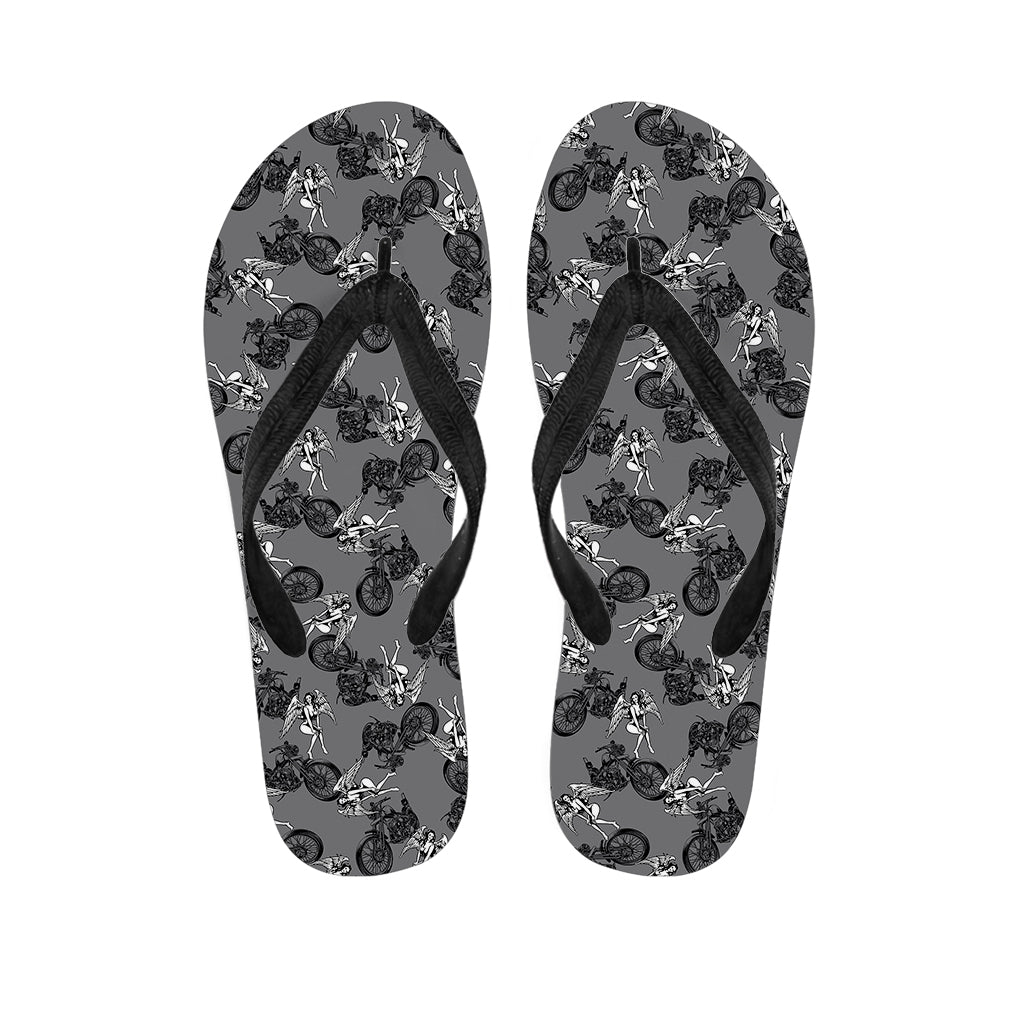 Motorcycle And Angel Pattern Print Flip Flops For Men Women