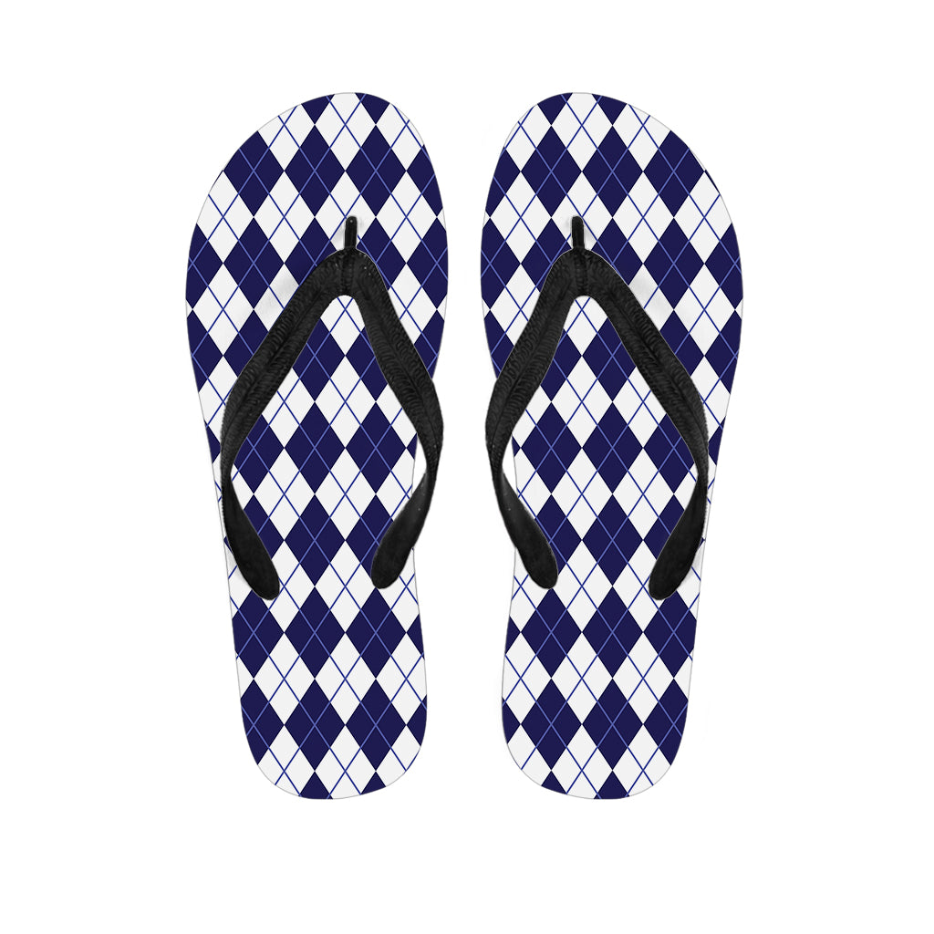 Navy Blue And White Argyle Pattern Print Flip Flops For Men Women