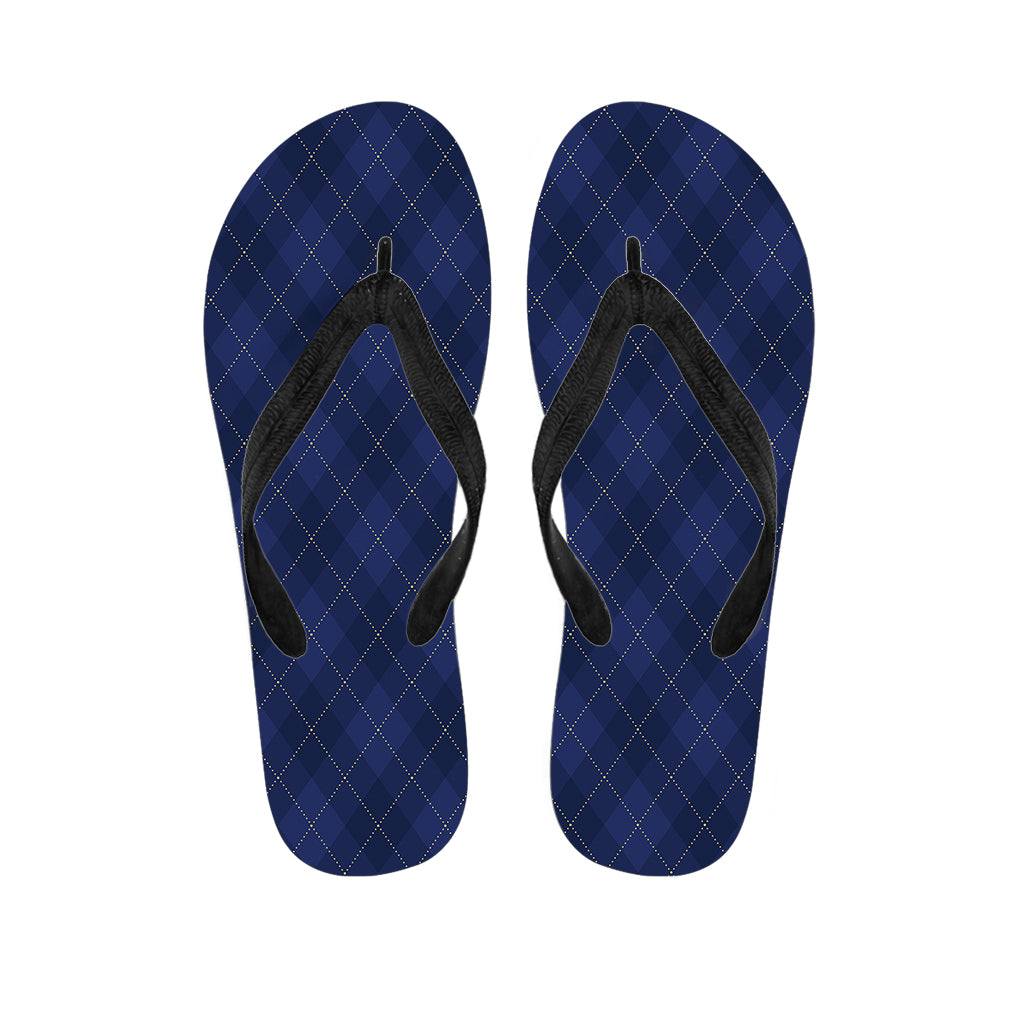 Navy Blue Argyle Pattern Print Flip Flops For Men Women