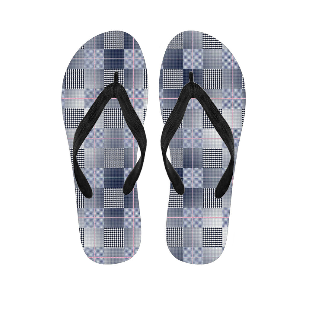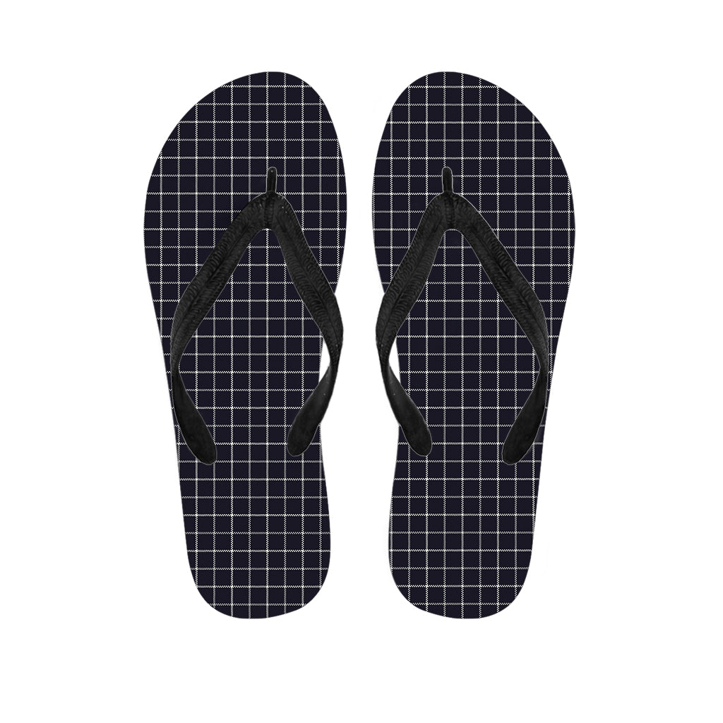 Navy Tattersall Pattern Print Flip Flops For Men Women