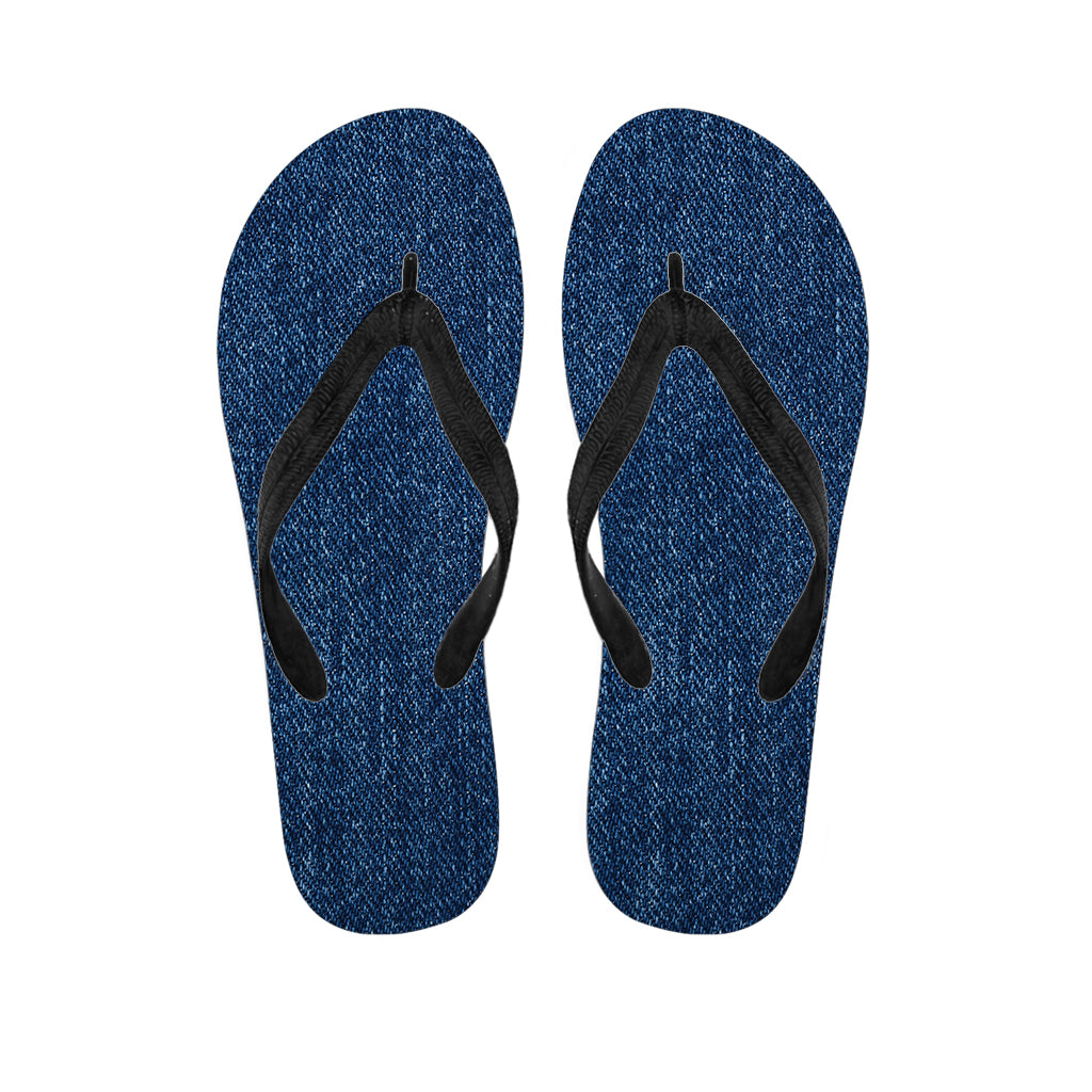Navy Blue Denim Jeans Print Flip Flops For Men Women
