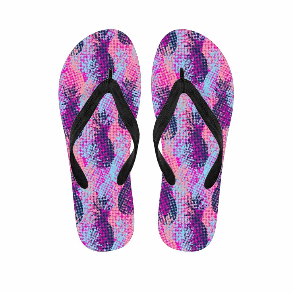 Neon Trippy Pineapple Pattern Print Flip Flops For Men Women
