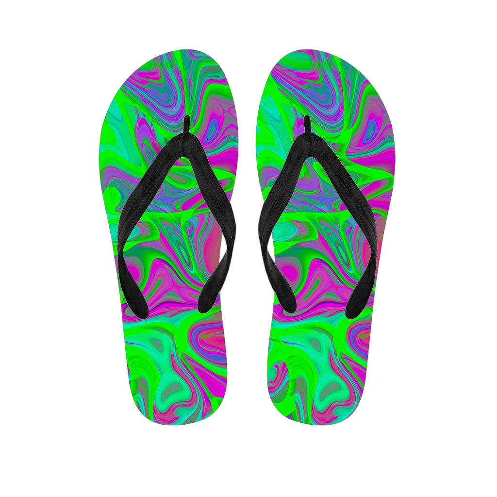 Neon Green Pink Psychedelic Trippy Print Flip Flops For Men Women