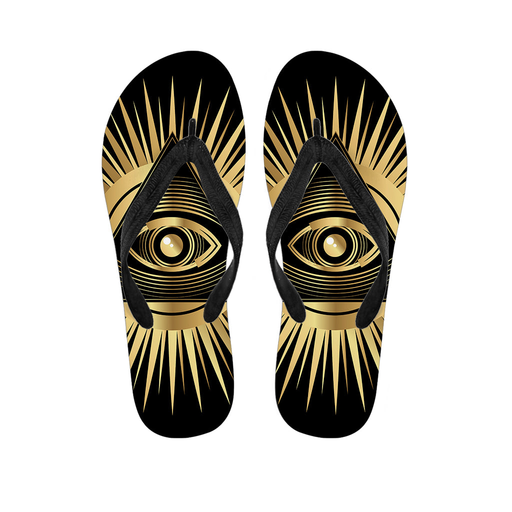 Black And Gold Eye Of Providence Print Flip Flops For Men Women
