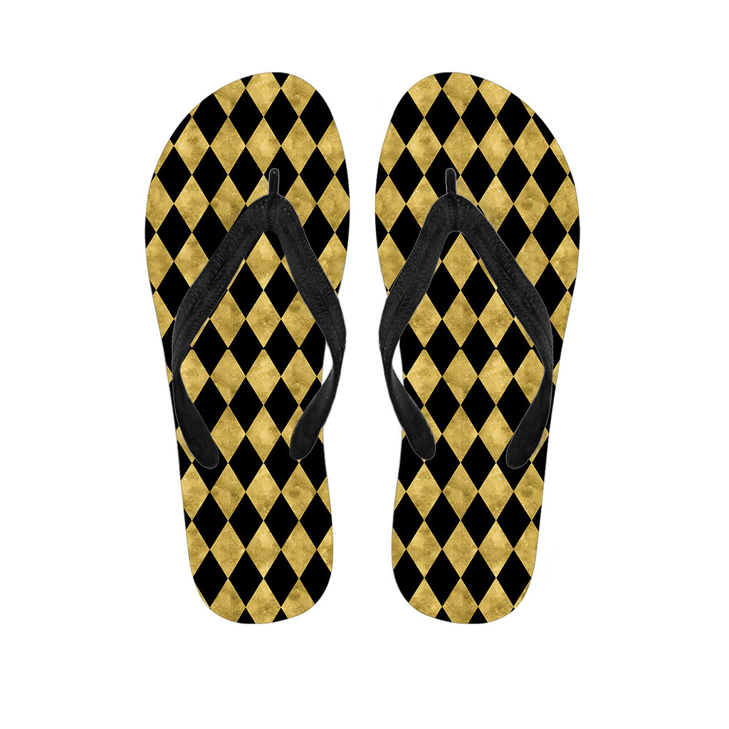Black And Gold Harlequin Pattern Print Flip Flops For Men Women
