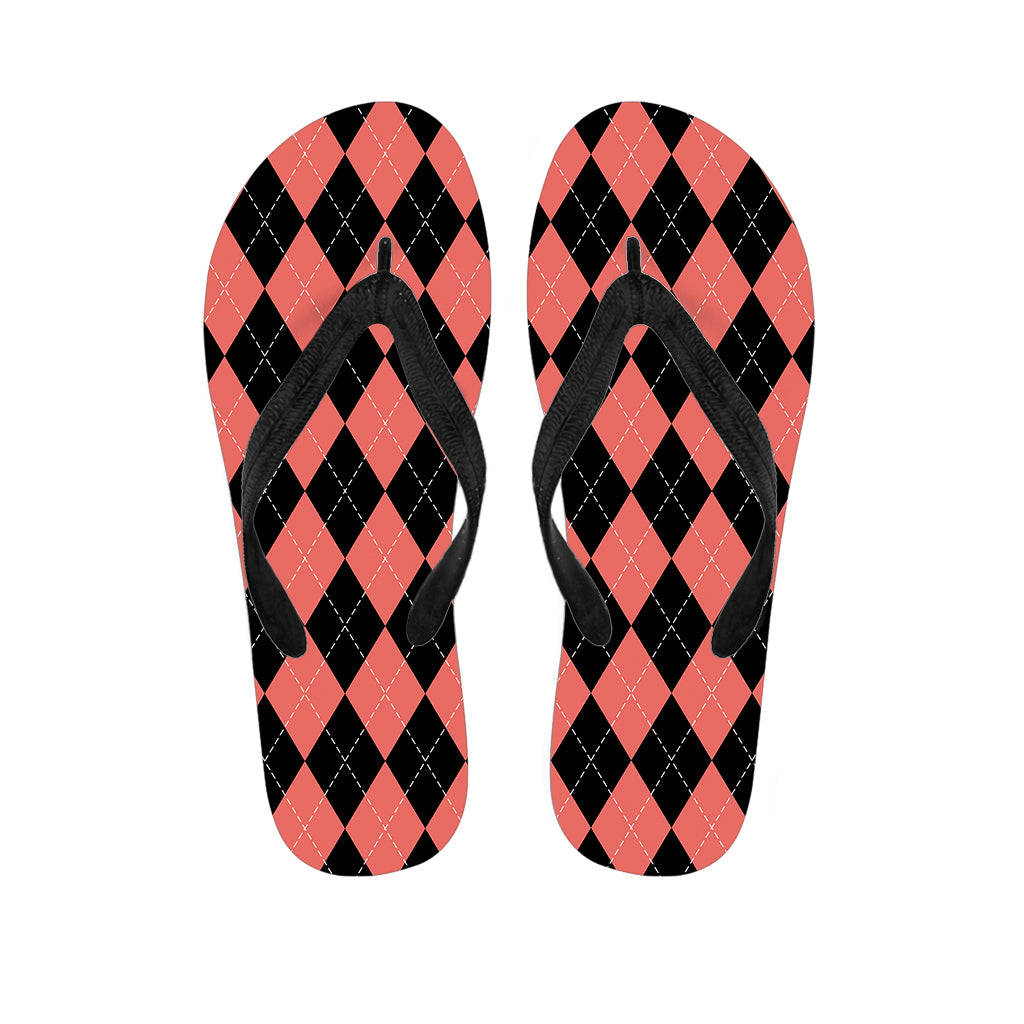 Black And Coral Argyle Pattern Print Flip Flops For Men Women