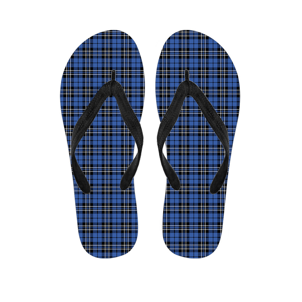 Black And Blue Tartan Pattern Print Flip Flops For Men Women