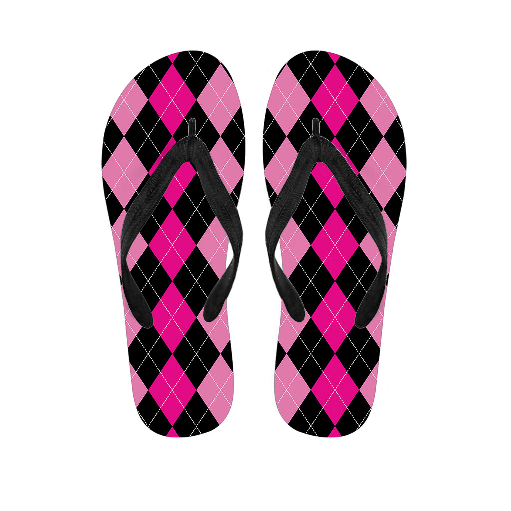 Black And Deep Pink Argyle Pattern Print Flip Flops For Men Women