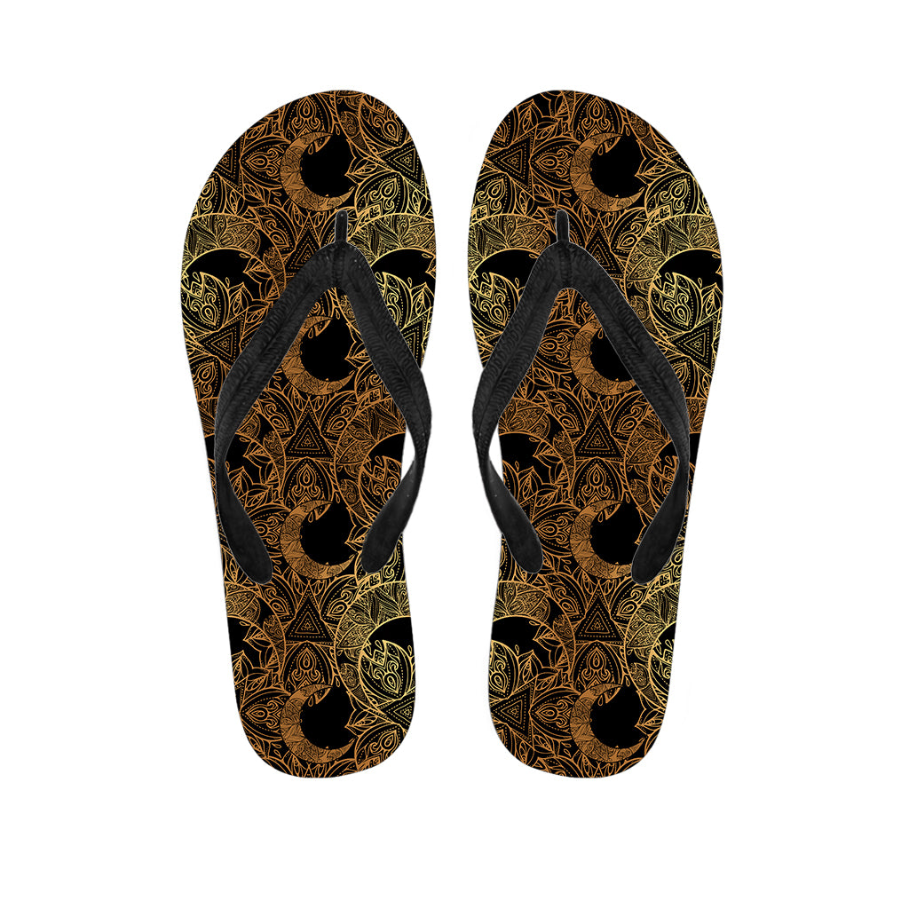 Black And Gold Celestial Pattern Print Flip Flops For Men Women