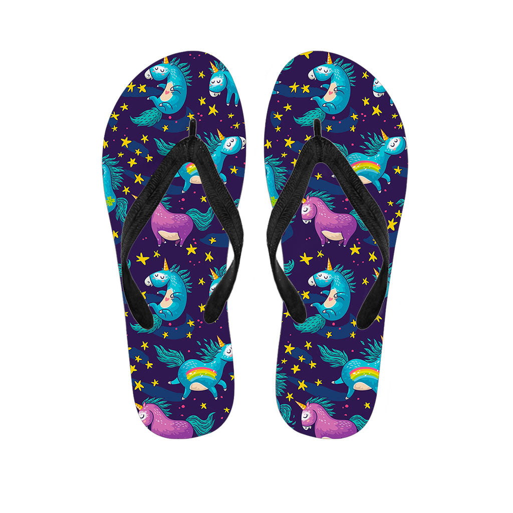 Night Star Unicorn Pattern Print Flip Flops For Men Women