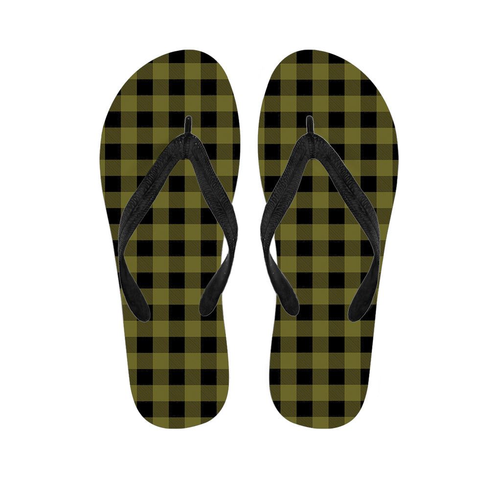 Olive Green Buffalo Check Pattern Print Flip Flops For Men Women