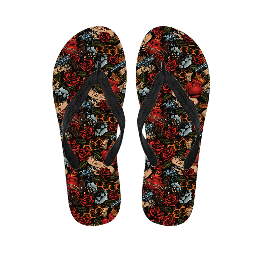 Old Japanese Samurai Mask Print Flip Flops For Men Women