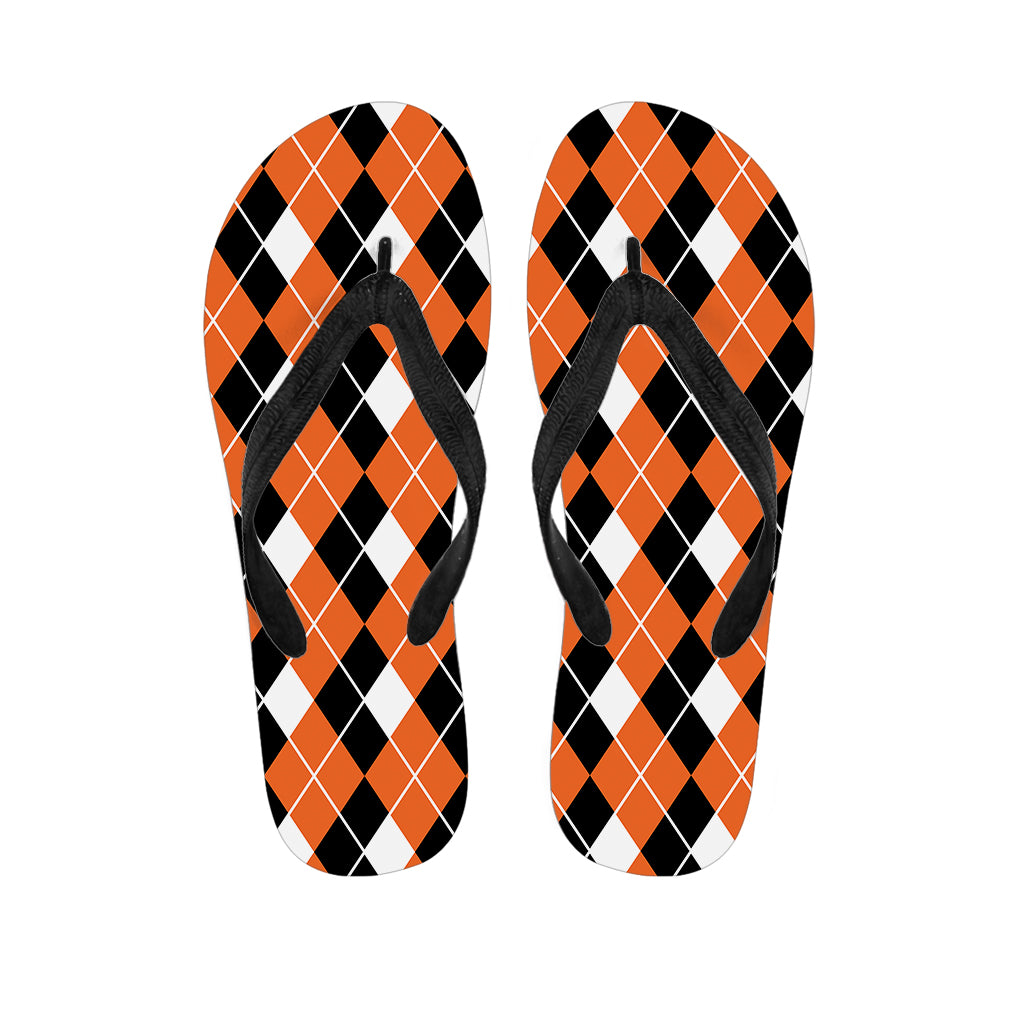 Orange White And Black Argyle Print Flip Flops For Men Women