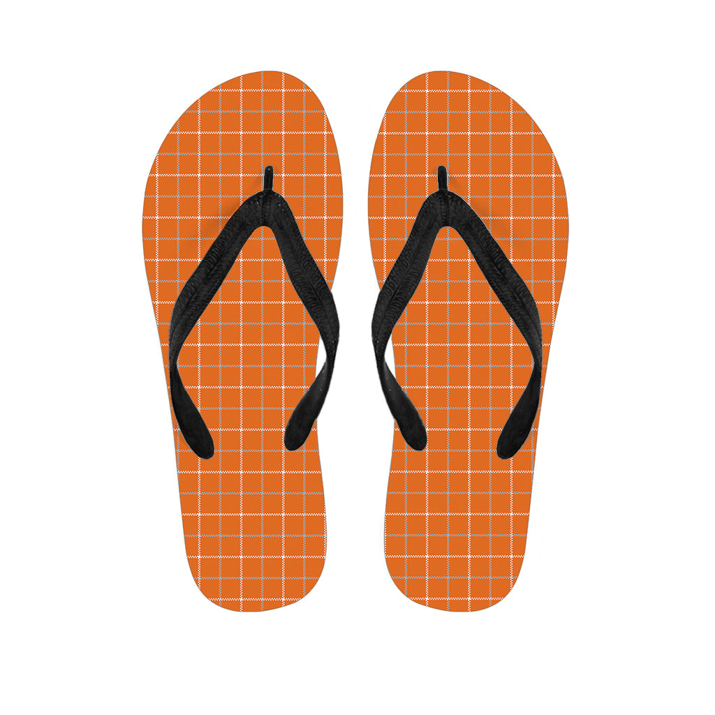 Orange Tattersall Pattern Print Flip Flops For Men Women