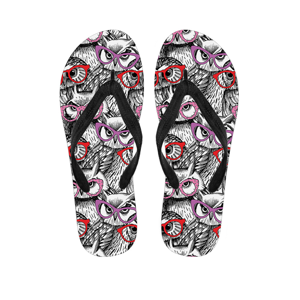 Owl With Glasses Pattern Print Flip Flops For Men Women