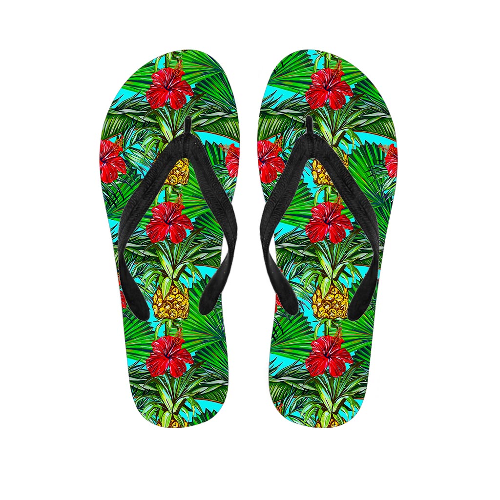 Pineapple Hibiscus Hawaii Pattern Print Flip Flops For Men Women
