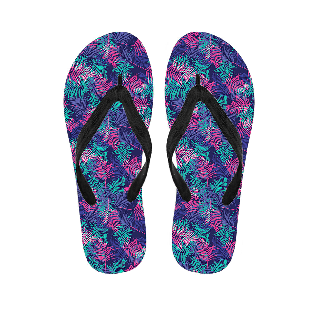 Pink And Blue Tropical Palm Leaf Print Flip Flops For Men Women