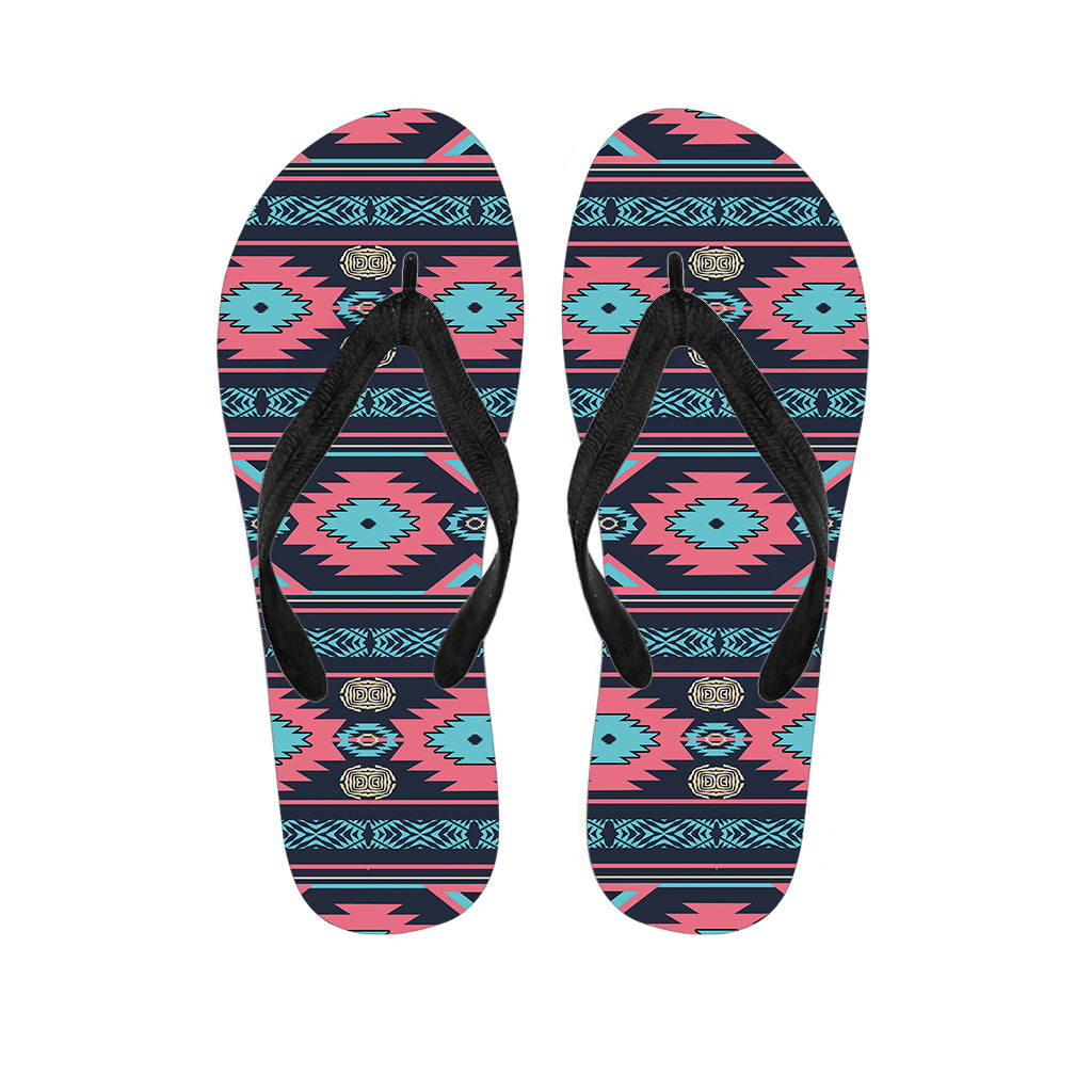 Pink And Blue Southwestern Pattern Print Flip Flops For Men Women