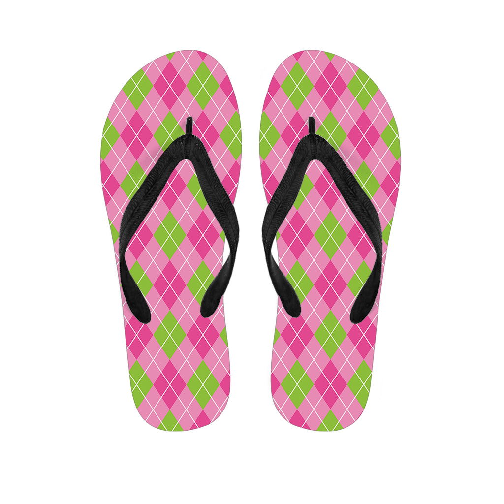 Pink And Green Argyle Pattern Print Flip Flops For Men Women
