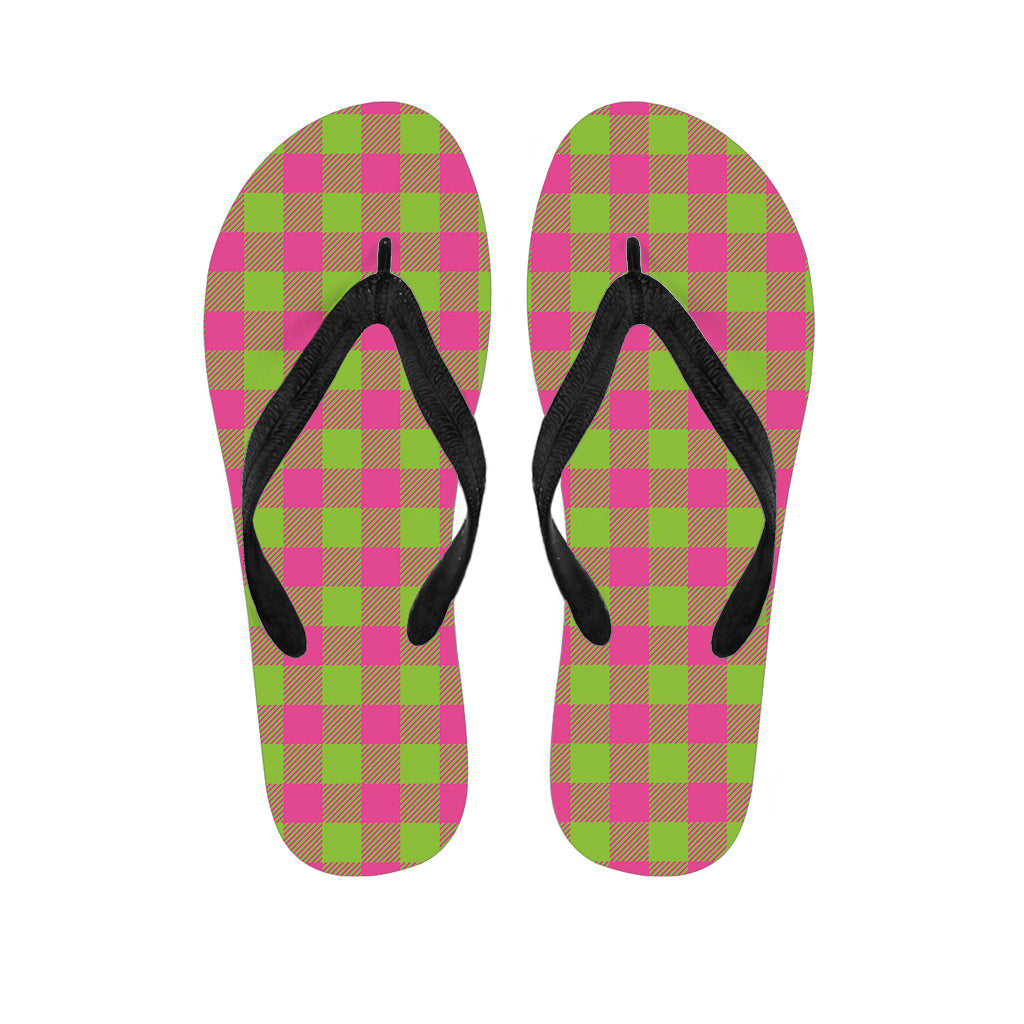 Pink And Green Buffalo Plaid Print Flip Flops For Men Women