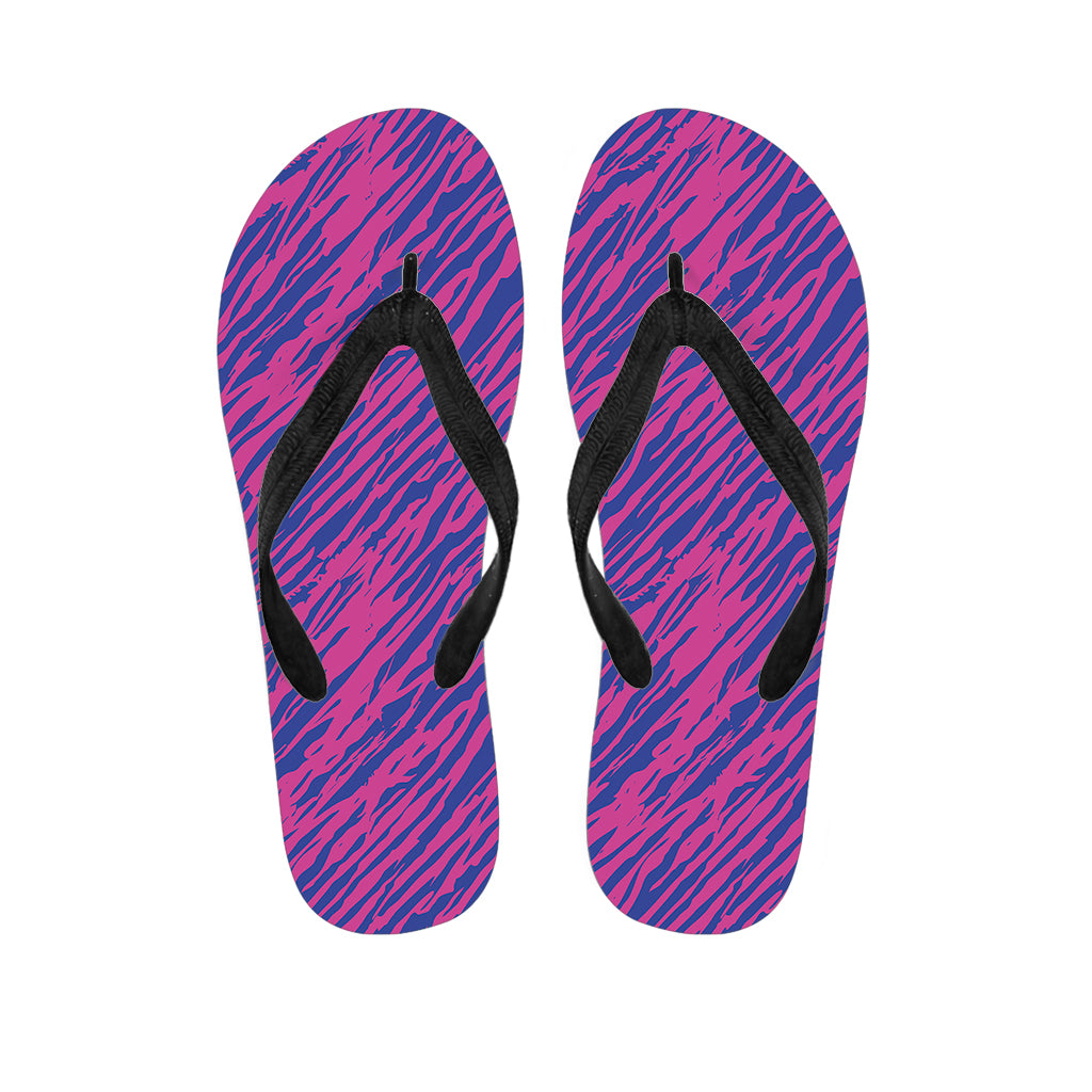 Pink And Blue Zebra Stripes Print Flip Flops For Men Women