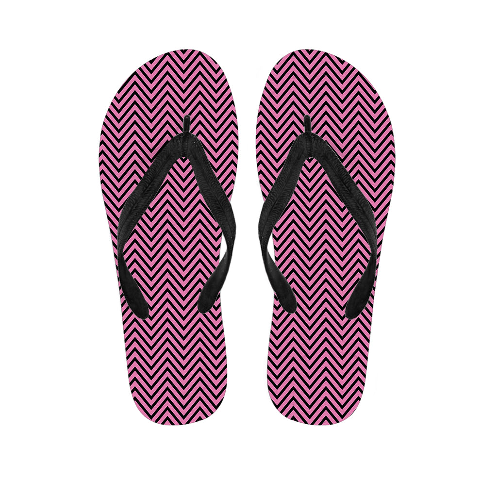 Pink And Black Zigzag Pattern Print Flip Flops For Men Women
