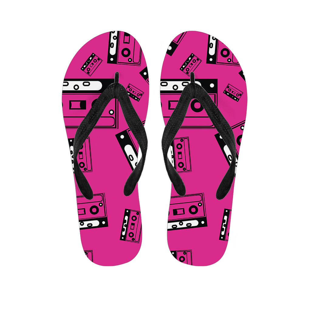 Pink Cassette Tape Pattern Print Flip Flops For Men Women