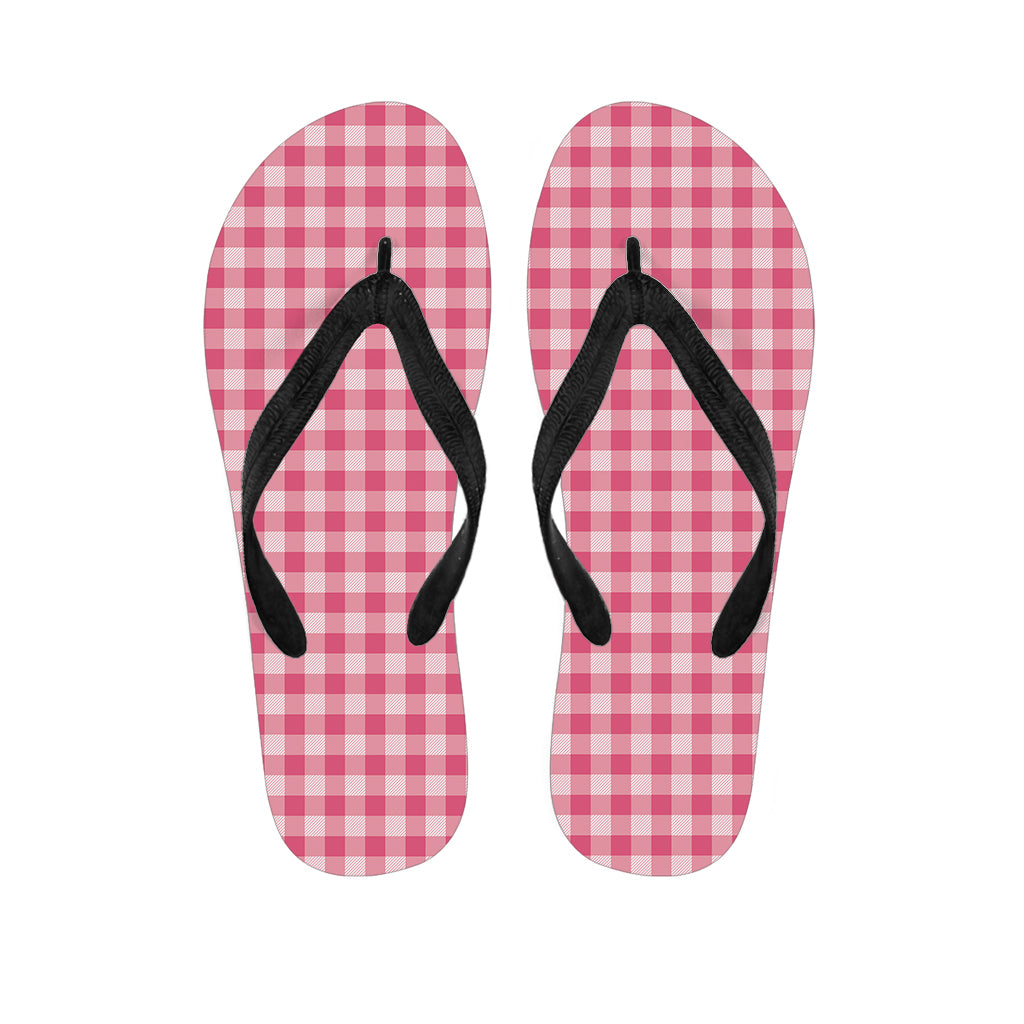 Pink Check Pattern Print Flip Flops For Men Women