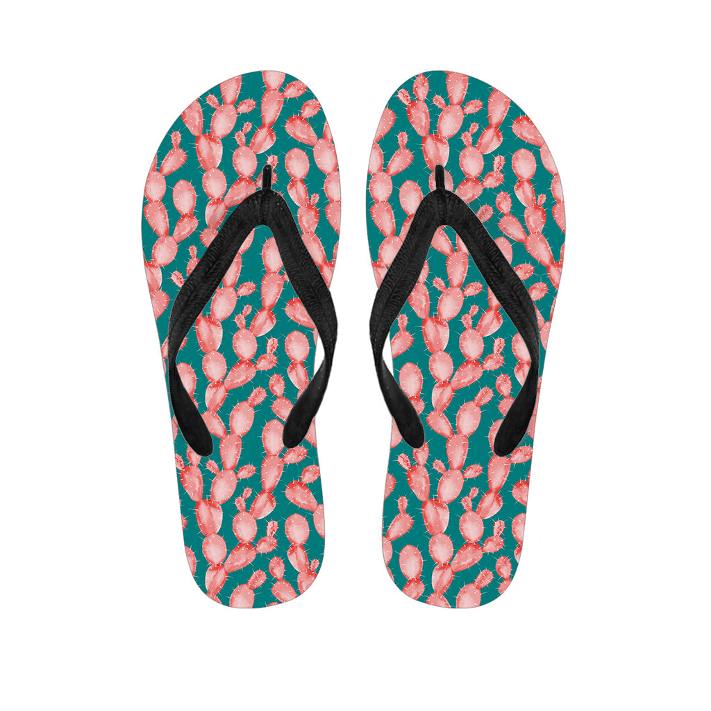Pink Cactus Pattern Print Flip Flops For Men Women