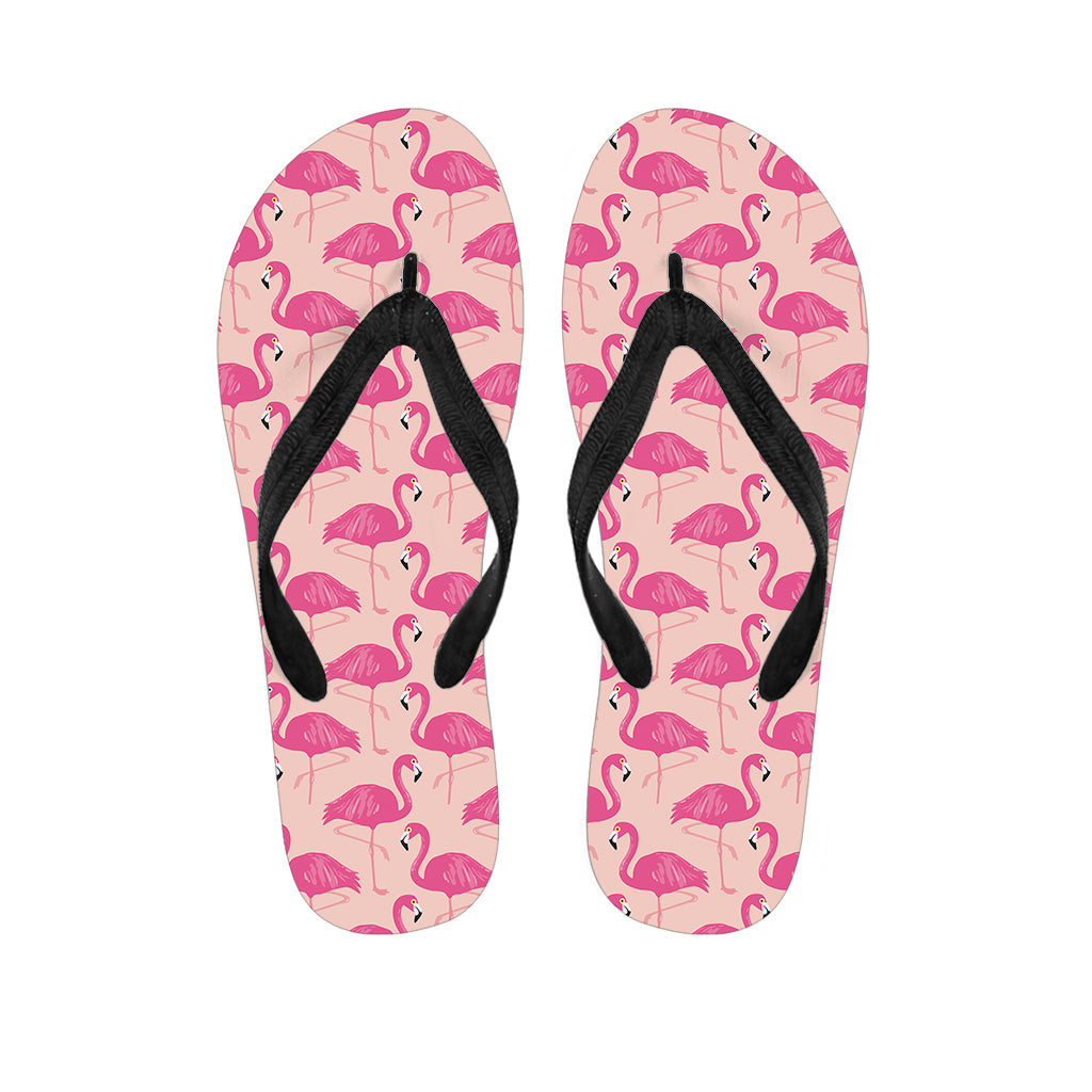 Pink Flamingo Pattern Print Flip Flops For Men And Women