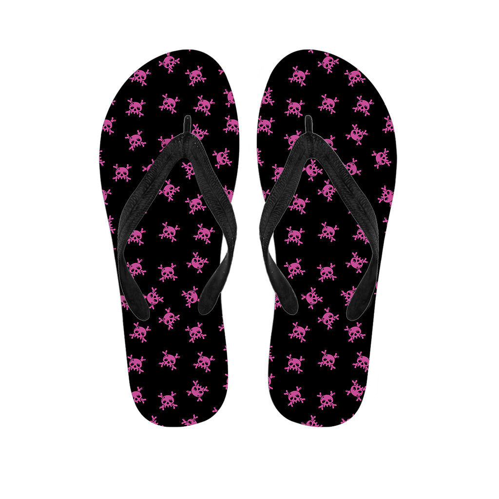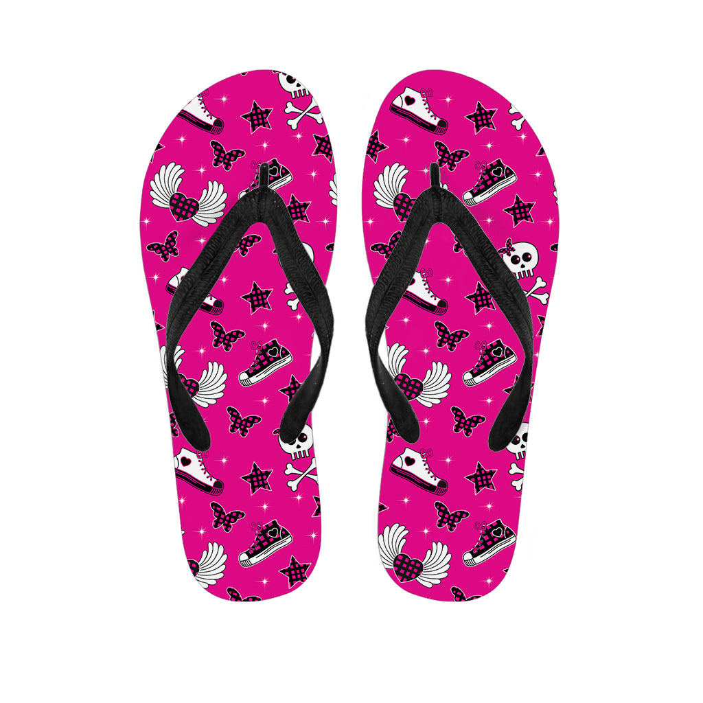 Pink Emo Skull Pattern Print Flip Flops For Men Women