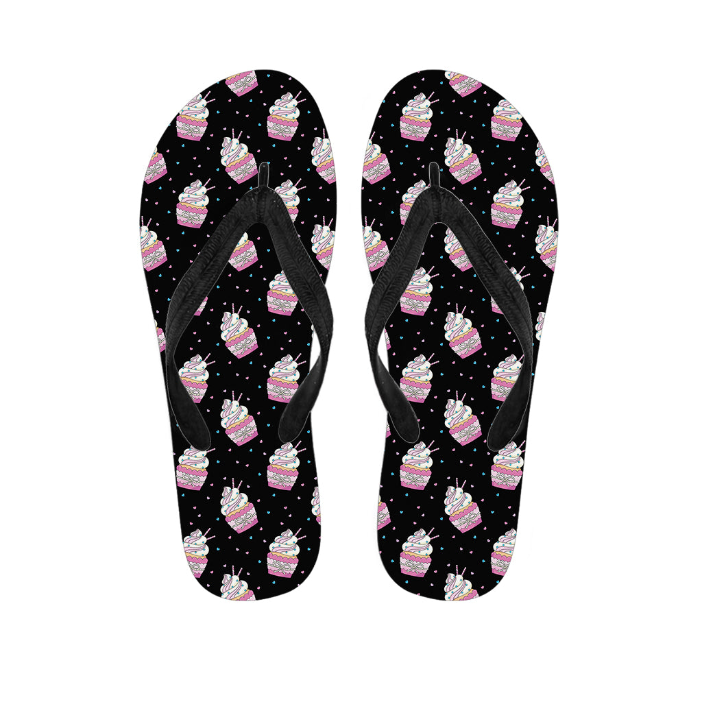 Pink Cupcake Pattern Print Flip Flops For Men Women