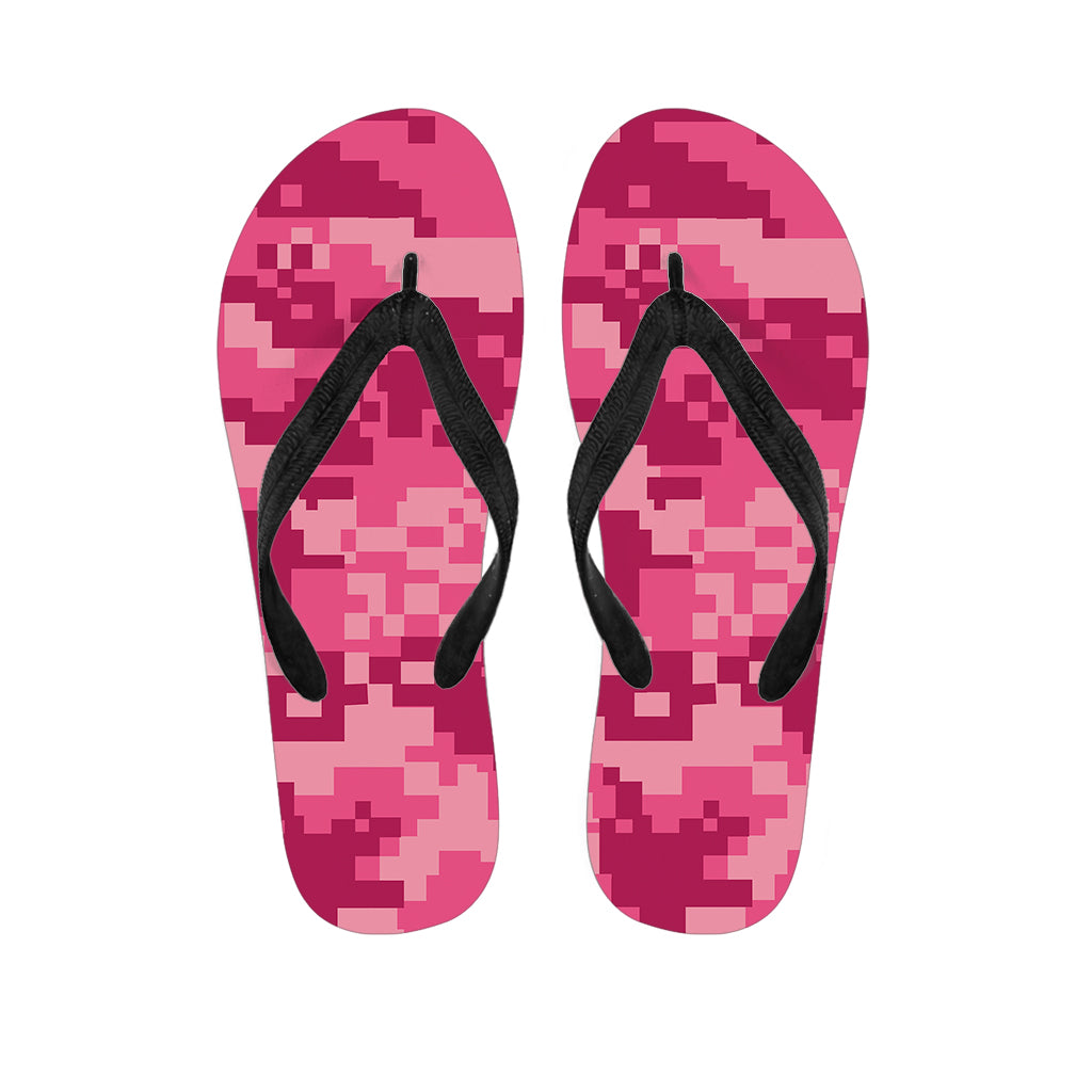Pink Digital Camo Pattern Print Flip Flops For Men Women