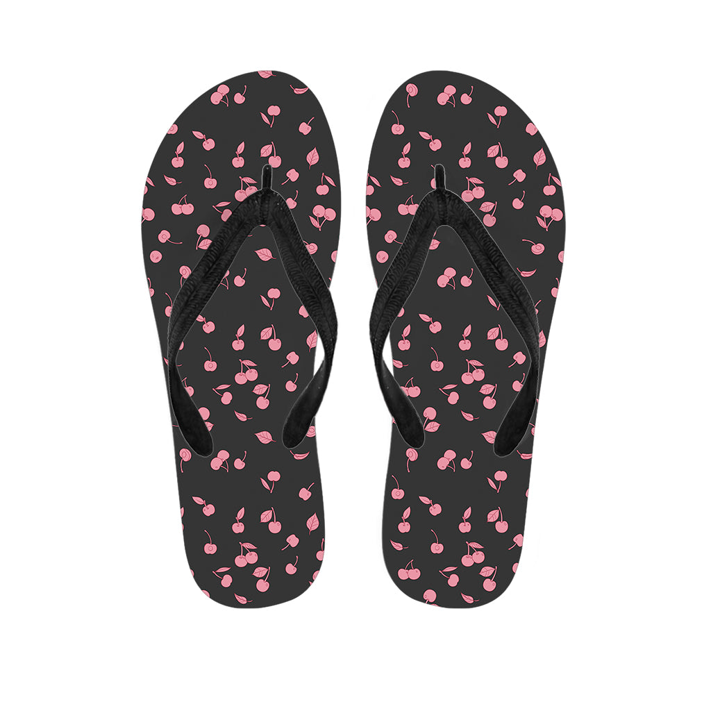 Pink Cherry Pattern Print Flip Flops For Men Women