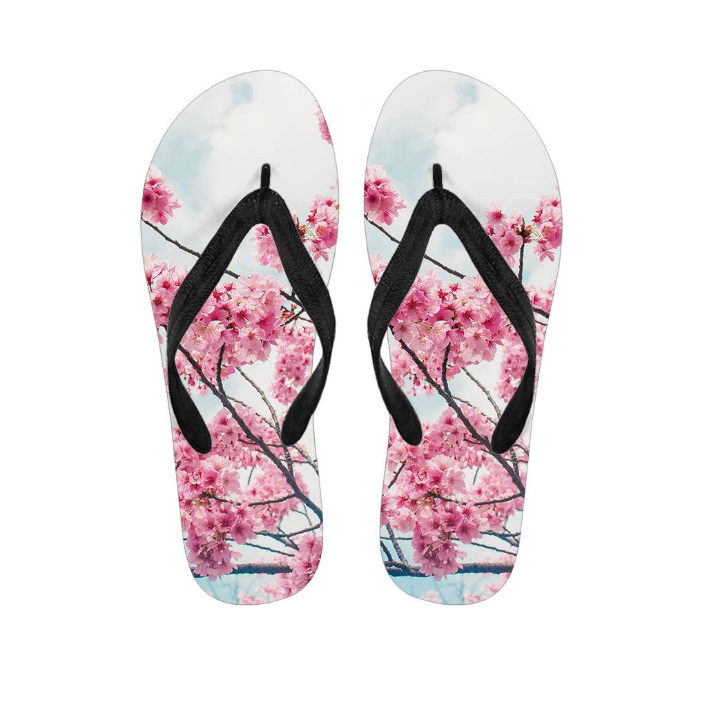 Pink Cherry Blossom Print Flip Flops For Men Women