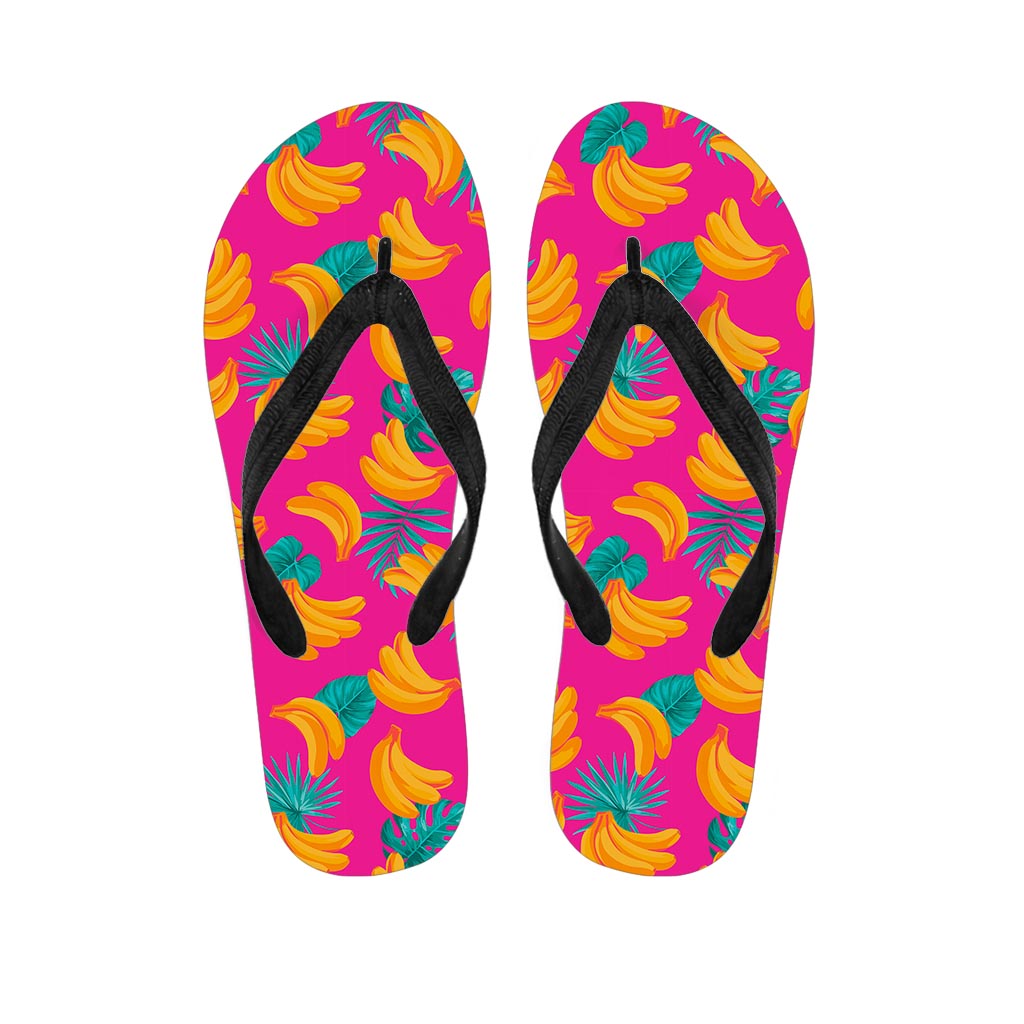Pink Tropical Banana Pattern Print Flip Flops For Men Women