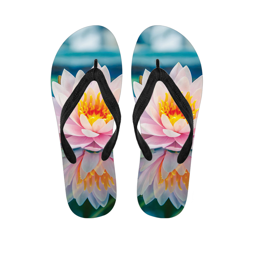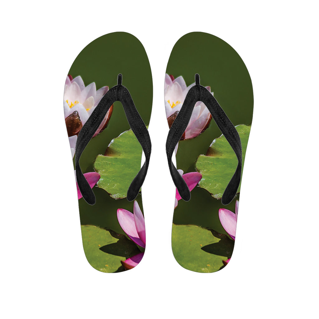 Pink Water Lilies Print Flip Flops For Men Women
