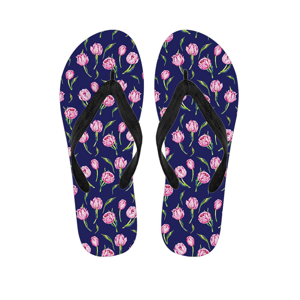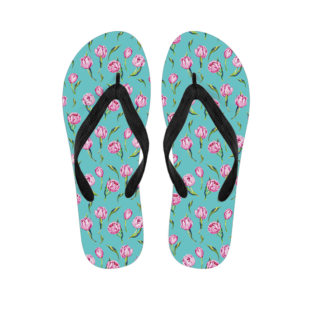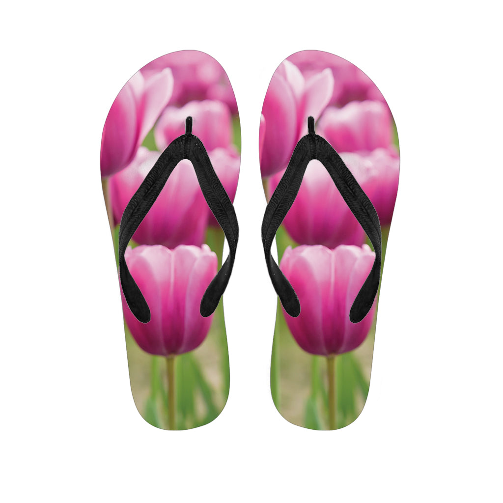 Pink Tulip Print Flip Flops For Men Women