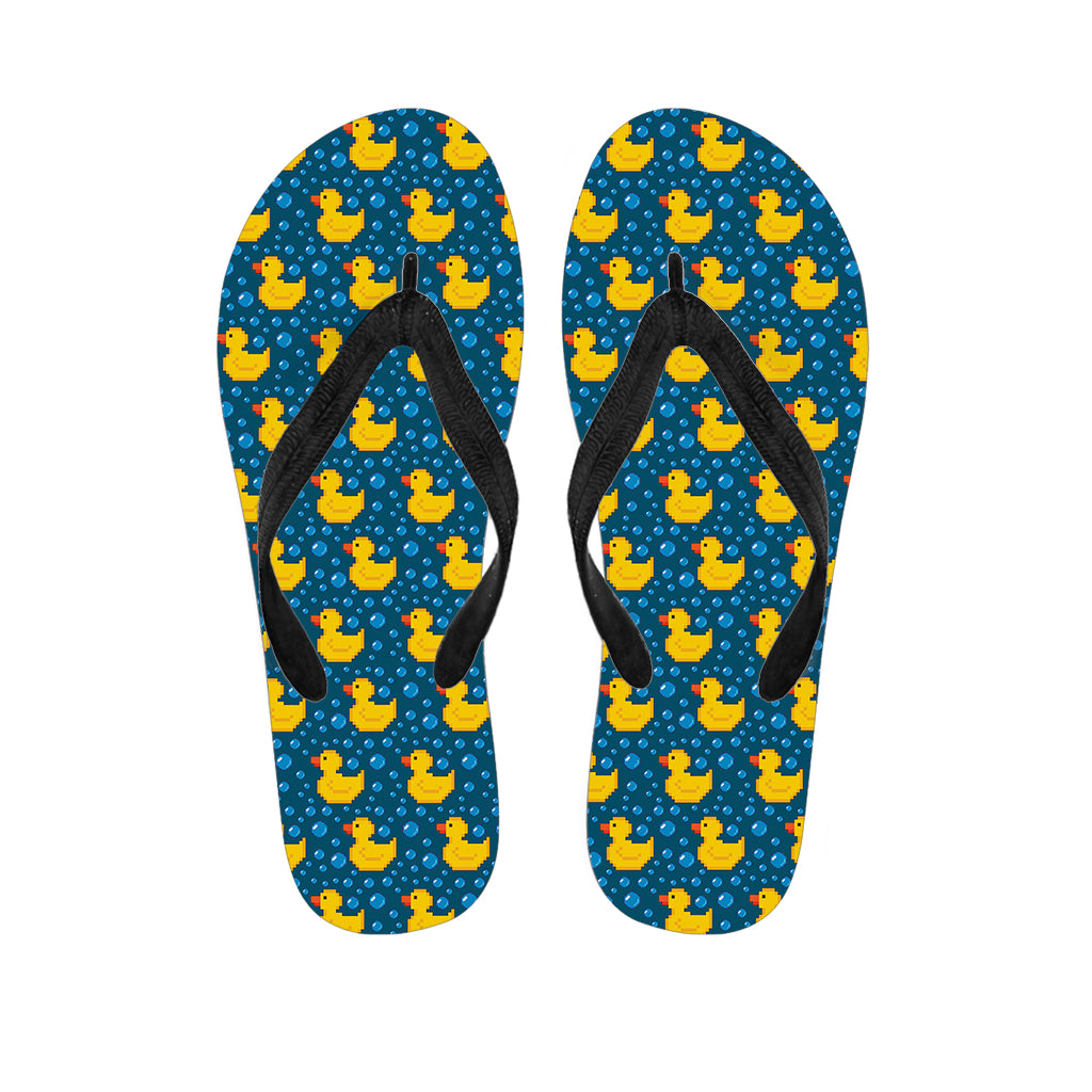 Pixel Rubber Duck Pattern Print Flip Flops For Men Women
