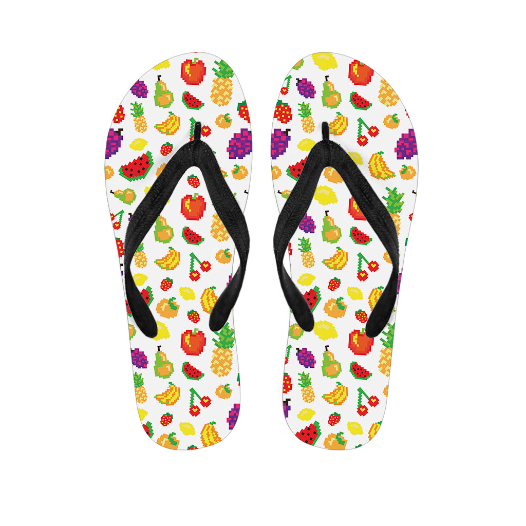 Pixel Fruits Pattern Print Flip Flops For Men Women