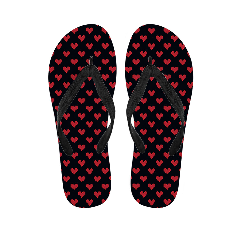 Pixel Heart Pattern Print Flip Flops For Men Women