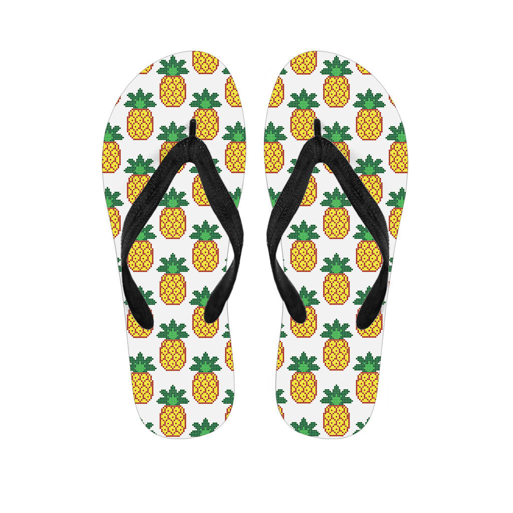 Pixel Pineapple Pattern Print Flip Flops For Men Women