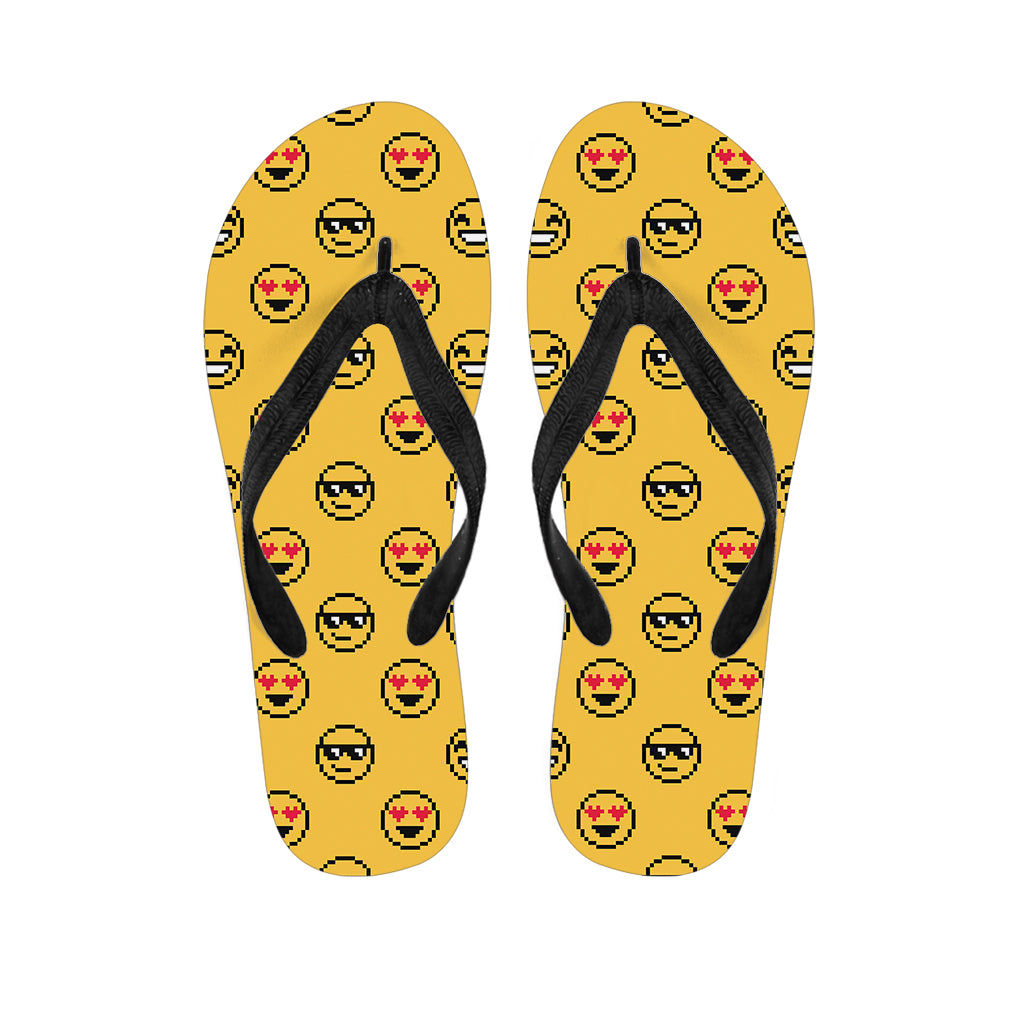 Pixel Emoji Pattern Print Flip Flops For Men Women